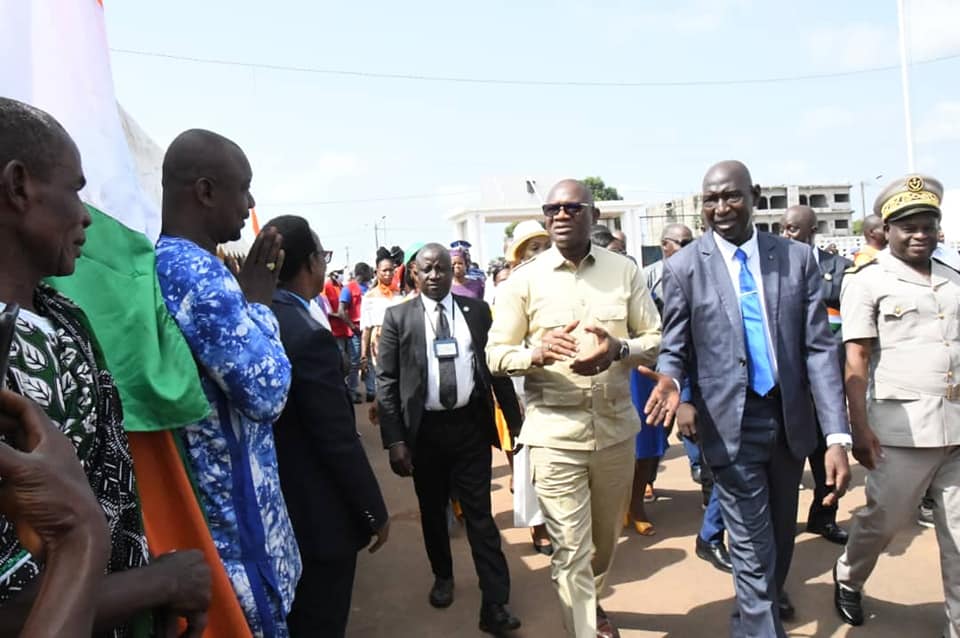 La ville de Grand-Lahou a accueilli la délégation ministérielle sur l'esplanade de la Mairie. Une ambiance des grands jours de fête, où se mêlent, chants, fanfare, acclamations, couronnées par des danses du terroir, devant un public composé d'autorités locales, de jeunes et de femmes en joie, le Ministre est venu remercier les populations de Grand lahou pour leur soutien immense manifesté lors de la CAN de l’hospitalité qui a vu la victoire des éléphants.