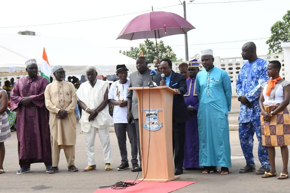 Le Maire de Grand-Lahou, Monsieur Ali SISSOKO prenant la parole au pupitre, s'est exprimé en ces termes : « Lorsque nous regardions les péripéties durant la CAN, je souhaiterais que nous puissions remercier en premier ‘’Dieu’’ qui a rendu possible notre victoire. Egalement, disons merci au Président de la République, à son Premier Ministre et surtout au Ministre Délégué des Sports et du Cadre de Vie Adjé Silas METCH.