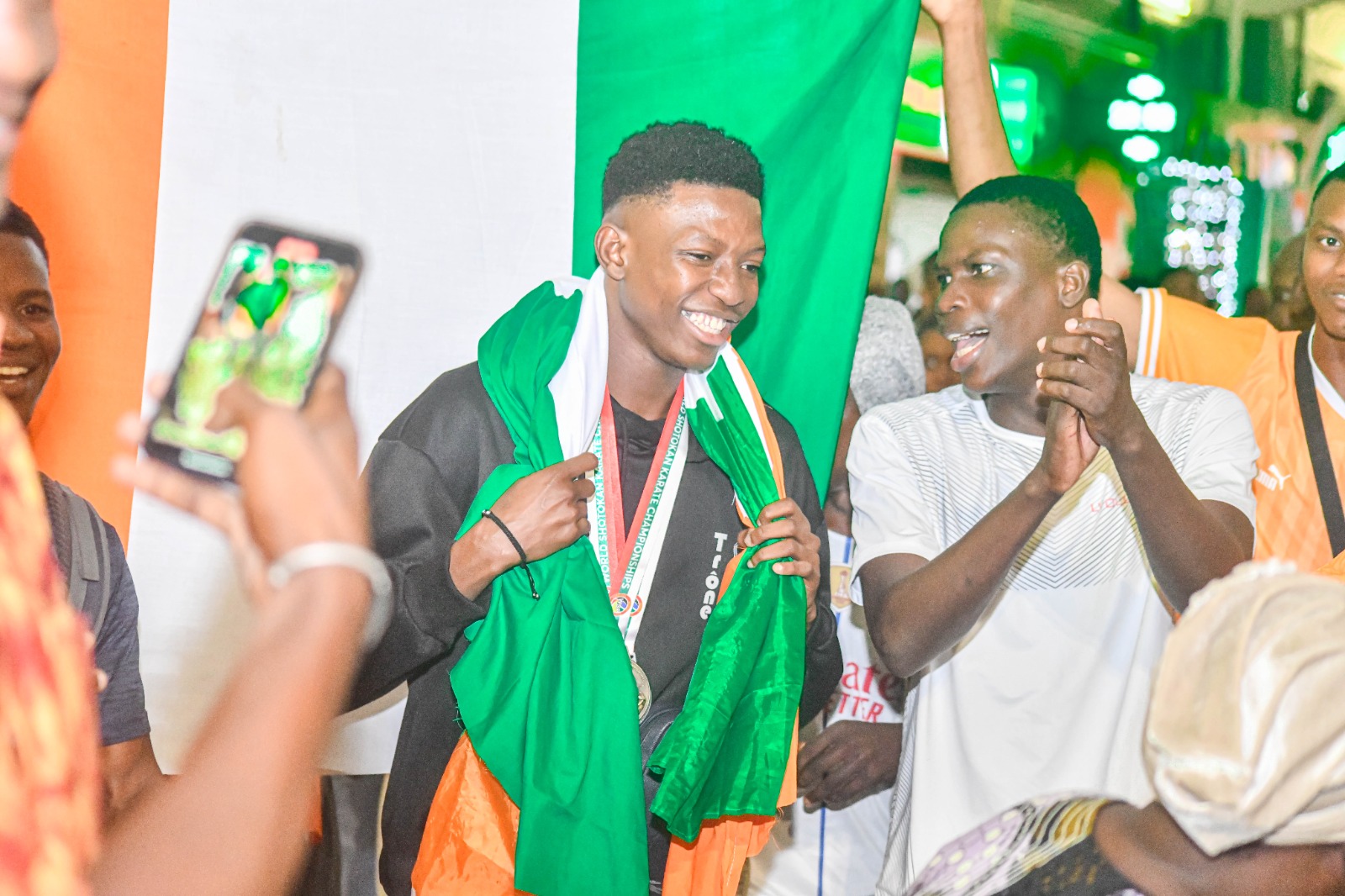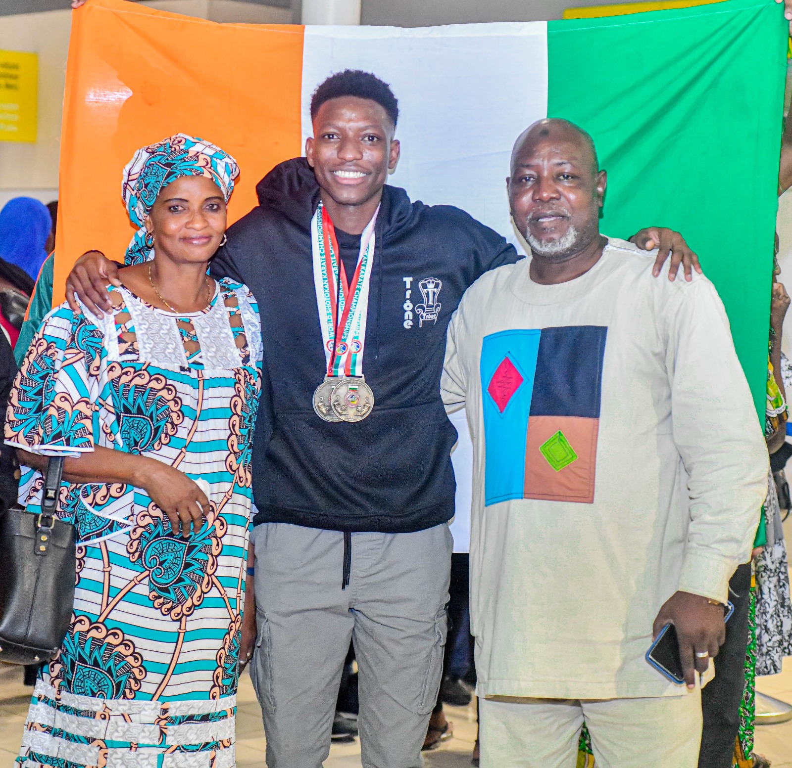 À leur arrivée à l'aéroport international Félix Houphouët Boigny, les champions du monde ont été accueillis dans la ferveur par de nombreux sportifs et surtout le représentant du Ministre délégué chargé des Sports et du Cadre de Vie