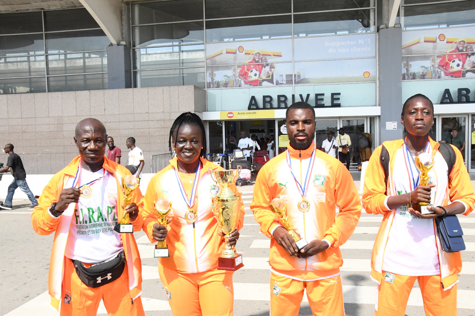 La Côte d’Ivoire a réussi à se hisser sur le podium final en raflant à ce meeting, tous les prix dans les catégories où ils ont compéti, au total quatre(04) médailles d’or glanées dans les catégories seniors dames et hommes ; vétérans dames et supers vétérans. À leur arrivée ce jour, à l’aéroport Félix Houphouët Boigny de Port-Bouet à Abidjan, les randonneurs ivoiriens ont été accueillis dans une ambiance chaleureuse assurée par le Comité National de Soutien aux Éléphants(CNSE), en présence des médias et du Chef de Cabinet Monsieur Philippe KRAGBÉ, représentant le Ministre délégué auprès du Premier Ministre, Ministre des Sports et du Cadre de Vie, chargé des Sports et du Cadre de Vie.