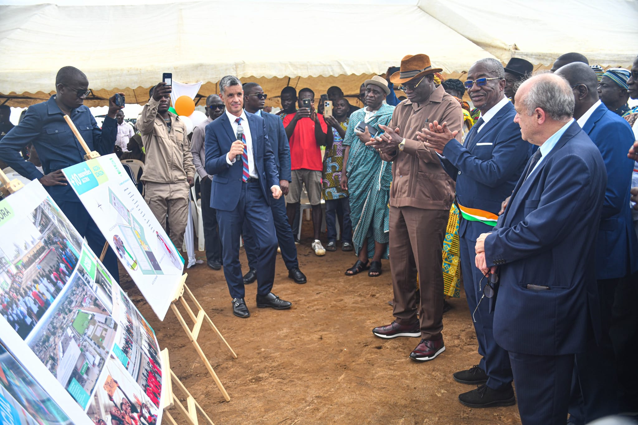 Ahiwahi, village situé à l'entrée de la commune de Songon a accueilli ce samedi 19 octobre 2024, la cérémonie de pose de première pierre marquant le début des travaux de l'Agora de cette commune en périphérie d’Abidjan. Cette cérémonie s’est faite en présence du Ministre délégué en charge des Sports et du Cadre de Vie, Adje Silas Metch, de son Excellence Jean-Christophe BELLIARD, Ambassadeur de la France près la République de Côte d'Ivoire, des autorités locales et de la population communale.