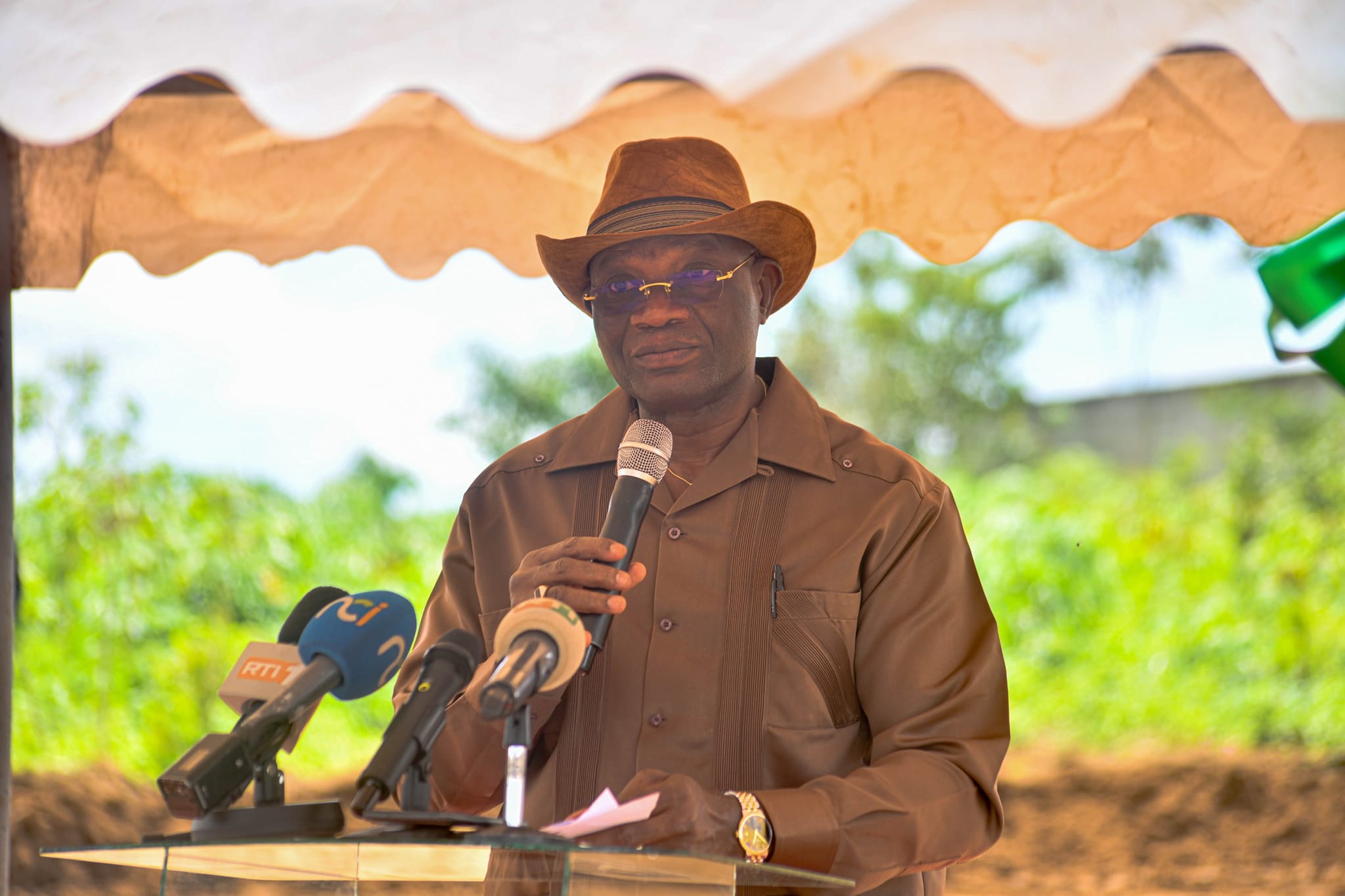 Le Ministre délégué, Adjé Sillas METCH a saisi l'occasion pour rendre un vibrant hommage au Chef de l'État, Son Excellence Monsieur Alassane OUATTARA, qui ne cesse de doter la Côte d'Ivoire d'infrastructures sportives modernes aux normes internationales. Le Ministre délégué a également salué avec respect le Premier Ministre, le Dr Robert Beugré MAMBÉ, pour sa capacité à mener avec dextérité le programme de développement du gouvernement. Enfin, le Ministre Adjé Silas a demandé à la population de prendre soin de ce futur joyau architectural et d'en faire bon usage.