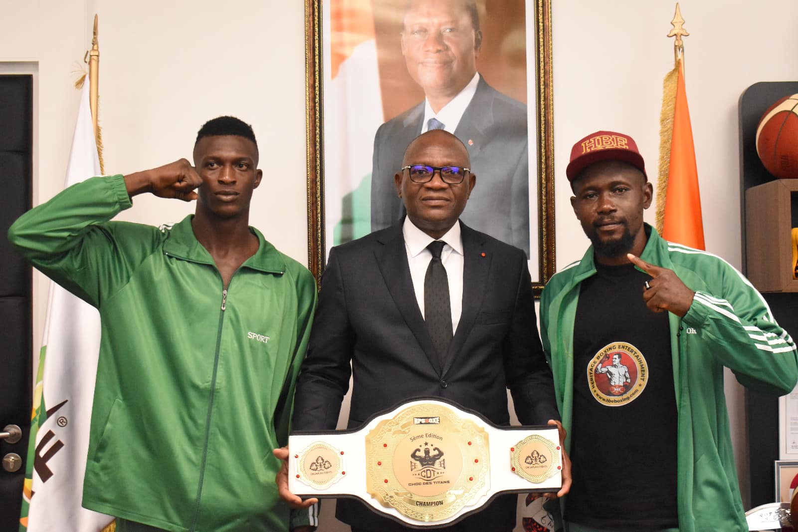 Cette délégation conduite par l'honorable Bema FOFANA, conseiller du promoteur de cet événement, a rendu un hommage au Ministre délégué qui ne lésine pas sur les moyens pour participer au succès de cette 5ème édition du « Choc des Titans ».