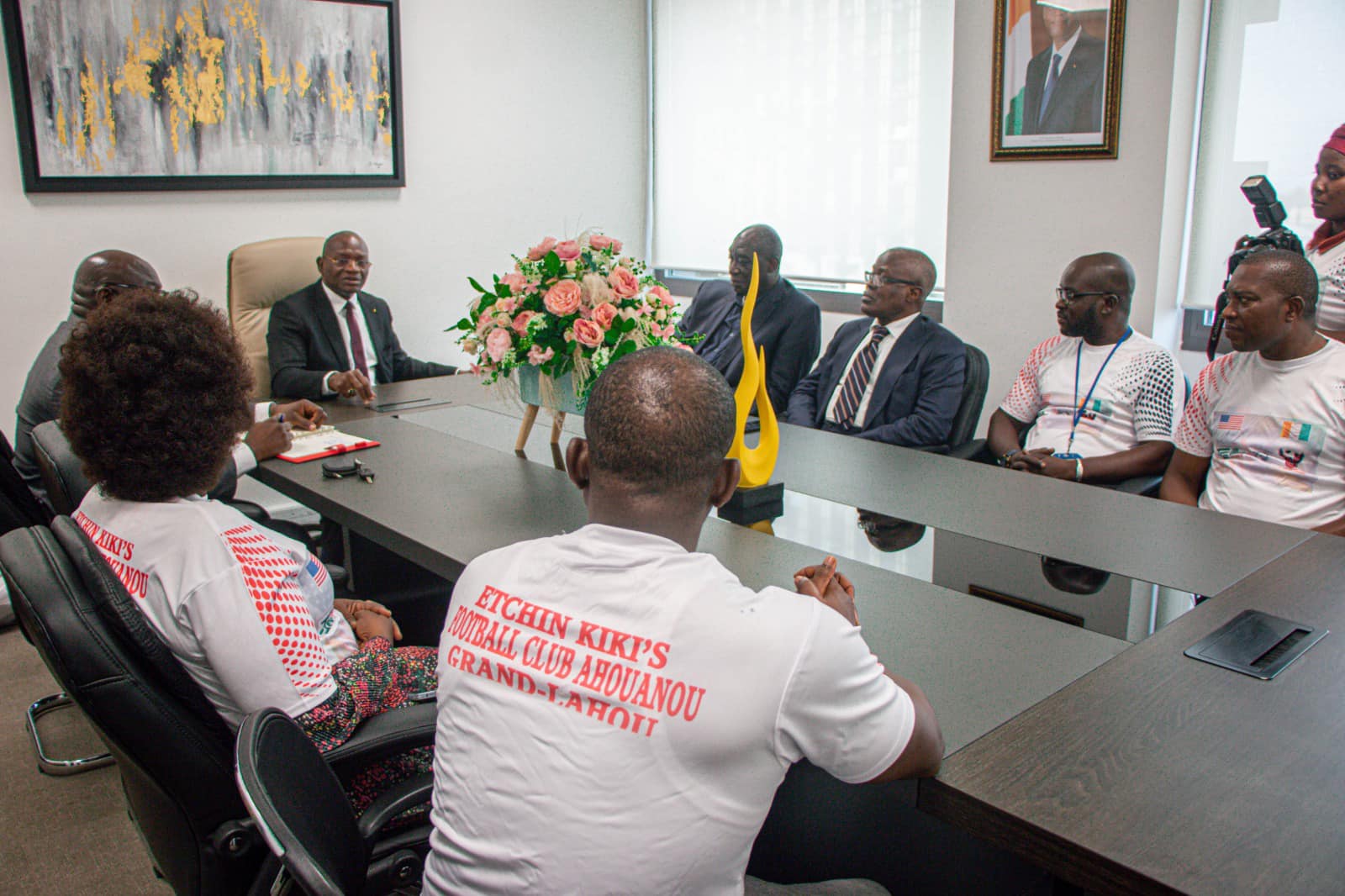 Dans le souci de s’inscrire dans la dynamique de l’Etat en matière de développement du sport en Côte d’Ivoire, Jean Marie ATTILA, formateur en sport, manager à l’agence américaine « JOB SOCCER » et KACOU Joëlle, présidente de AHOUANOU FC, club de football de Grand-Lahou, ont rencontré le Ministre délégué en charge des Sports et du Cadre de Vie, Adjé Silas METCH, à son Cabinet ce mardi 14 janvier 2025.
