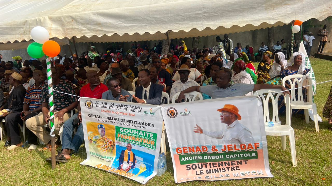 Un moment d'échange, de fraternité et de projection pour l'avenir de la région des Grand-Ponts, qui a réuni autour du Premier Ministre, les autorités administratives, politiques, coutumières, religieuses, les associations des femmes et des jeunes de la région des Grand-Ponts, avec en première ligne le Ministre délégué en charge des Sports et du Cadre de Vie, Adjé Silas METCH, et coordonnateur régional adjoint du Rassemblement des houphouétistes pour la démocratie et la paix (RHDP) dans les Grands-Ponts.