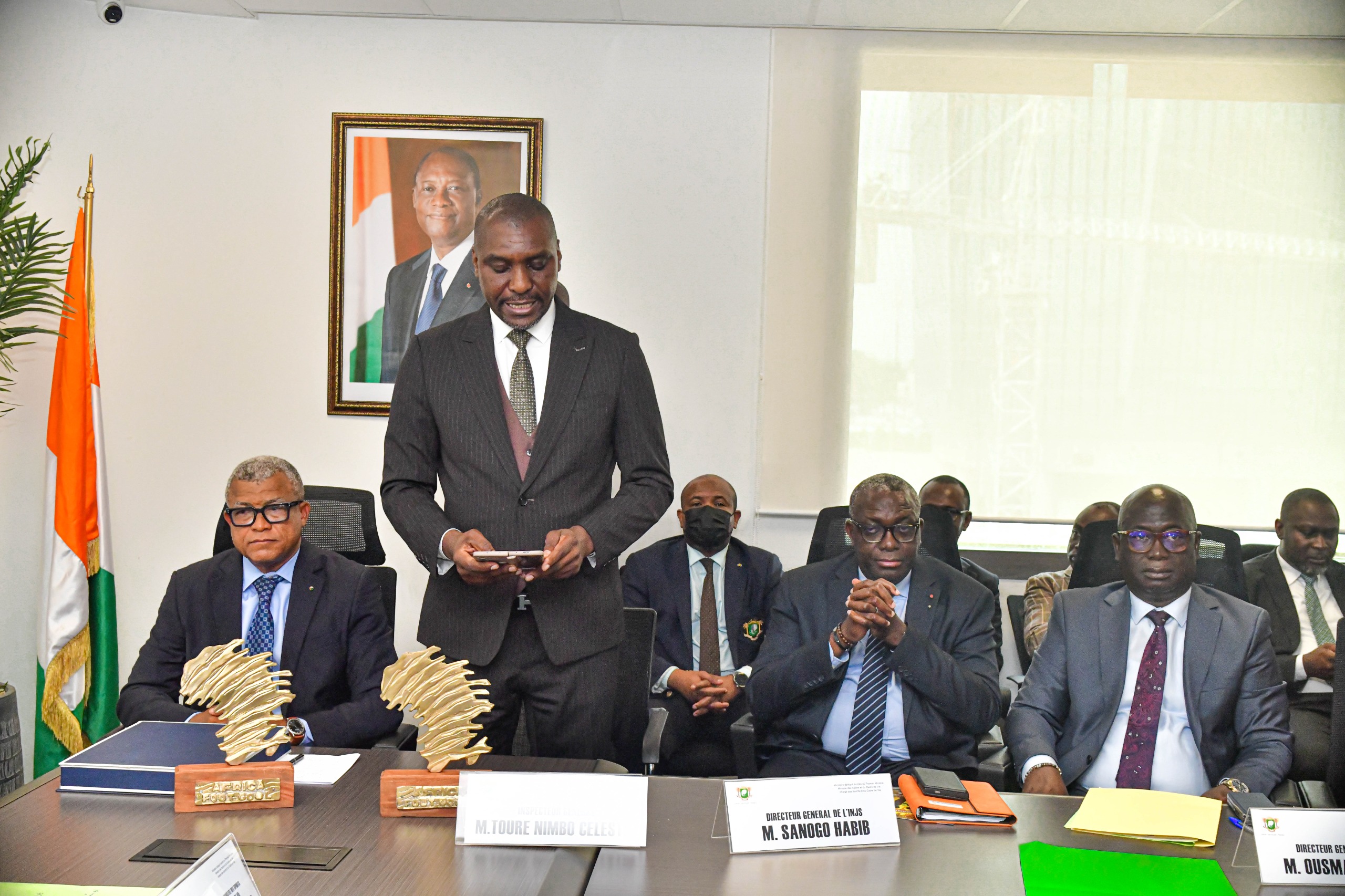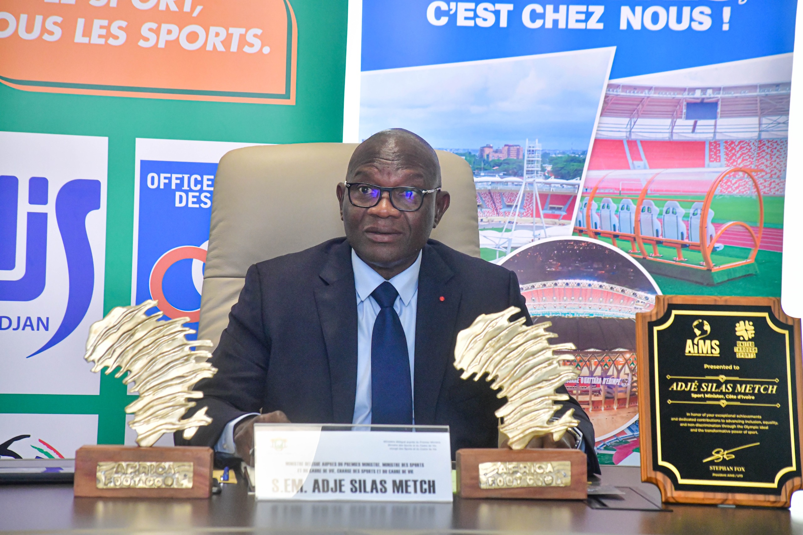 En effet, La Côte d’Ivoire a reçu trois trophées lors de cet évènement spécial. Deux pour son engagement olympique et son leadership sportif et un troisième a été décerné à la Fondation Didier Drogba pour son impact sur le football africain. Ces prix s ont été remis au Ministre Adjé Silas METCH, ce lundi 24 février 2025, lors d’une cérémonie à la salle de conférence du 2ᵉ étage de la Tour A.