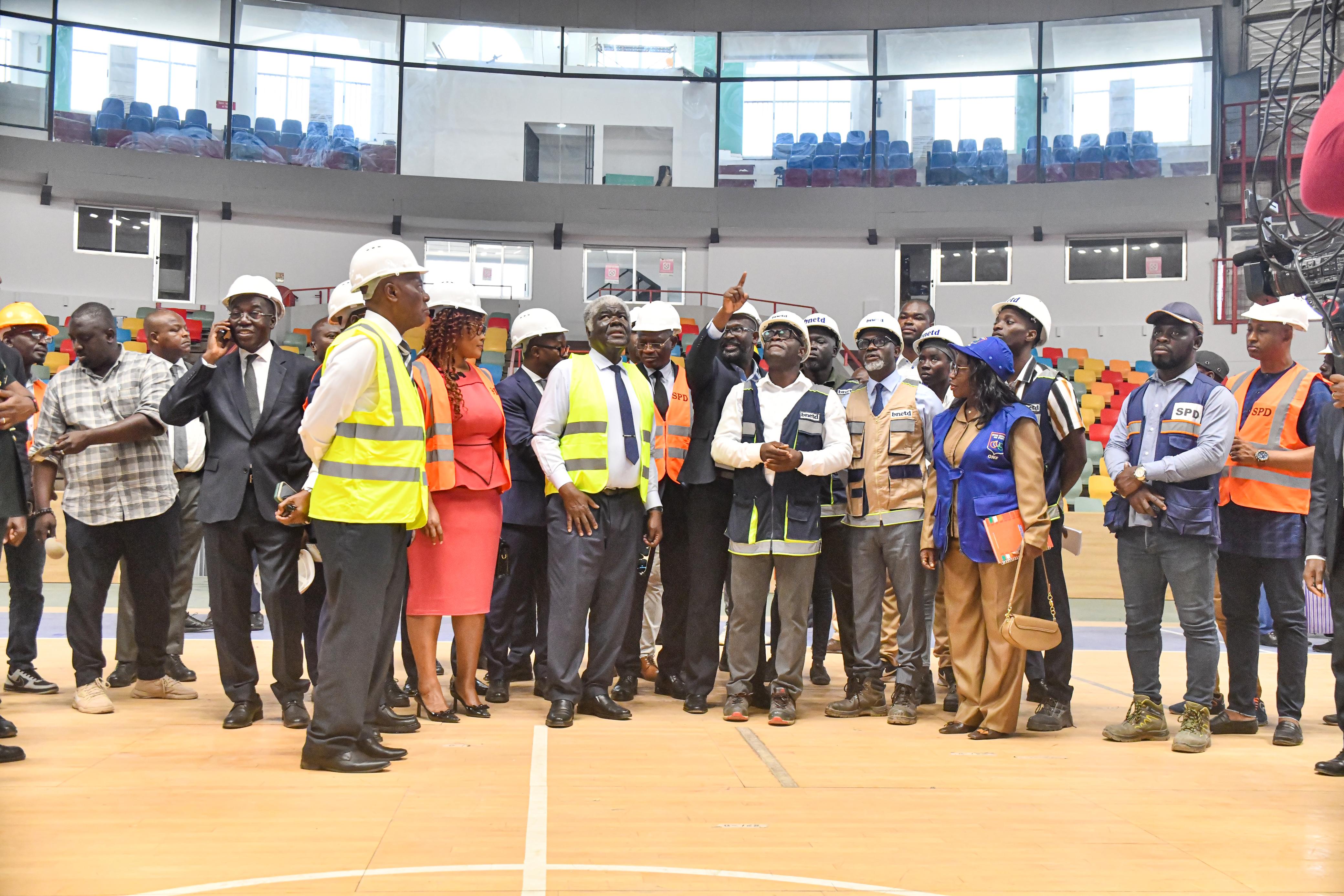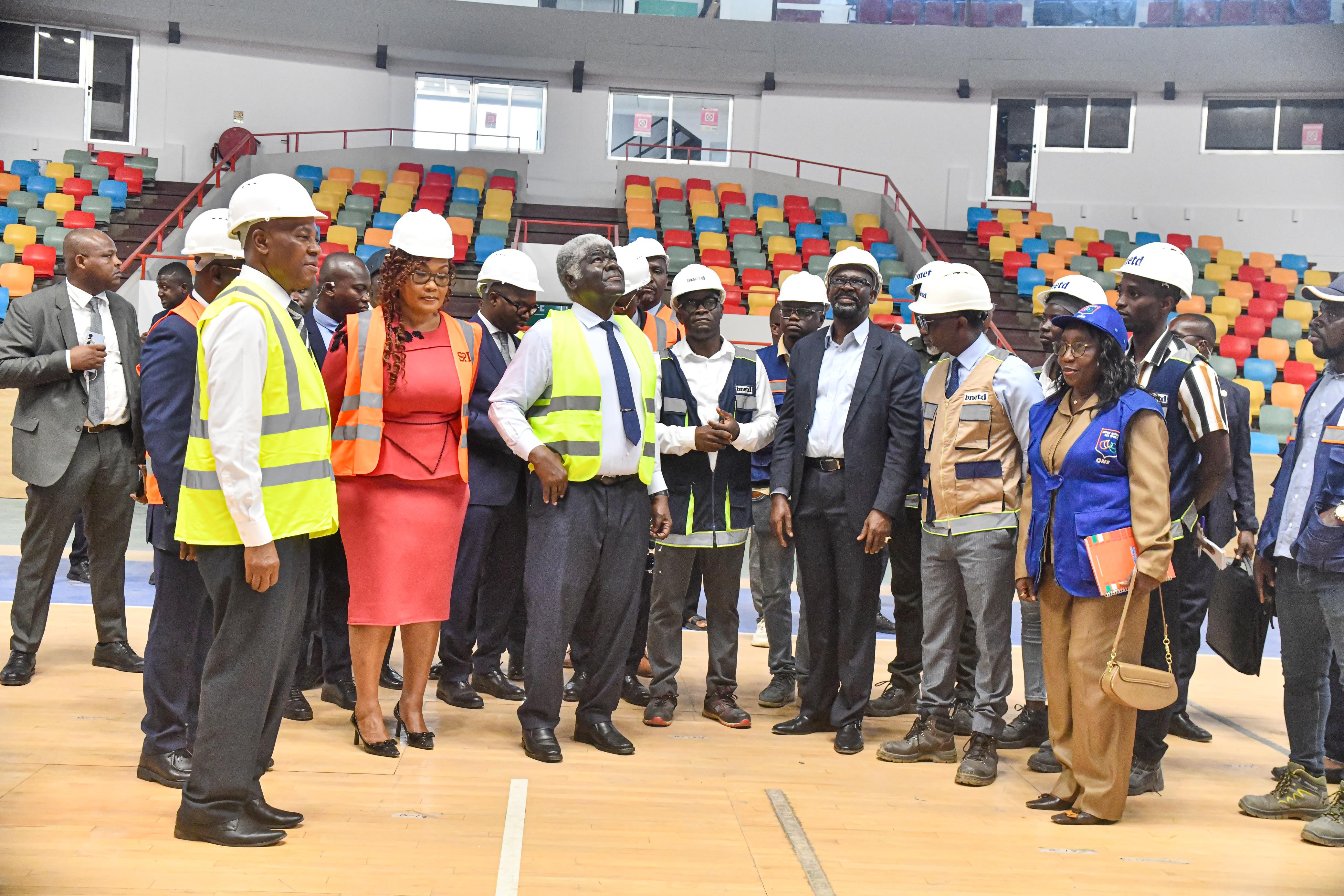 Pour cette visite d’inspection, le Premier Ministre était accompagné du Ministre délégué en charge des Sports et du Cadre de Vie, Adjé Silas METCH, de la Ministre de la Cohésion nationale, de la Solidarité et de la Lutte contre Pauvreté, Myss Belmonde DOGO, du Directeur Général de l’Office Ivoirien des Sports (ONS), Ousmane GBANÉ, du Directeur Afrique de la Fédération internationale de basketball (FIBA), Dr Alphonse BILÉ, du Président de la Fédération Ivoirienne de Basketball, Moussa DIARRA, des responsables technique du Bureau national d’étude techniques et de développement (BNETD).