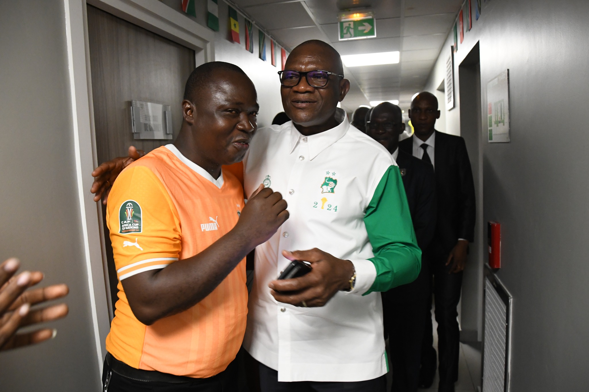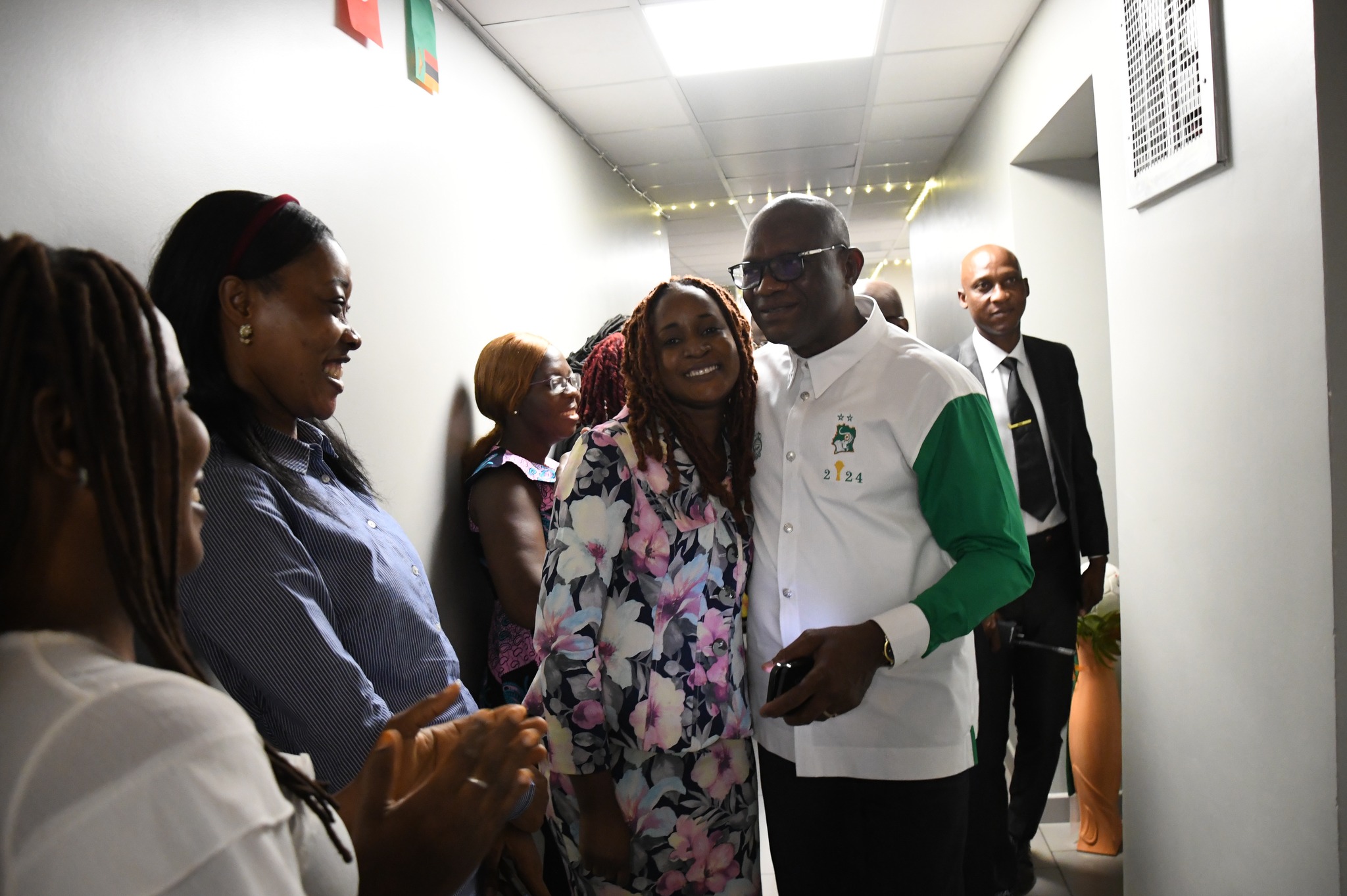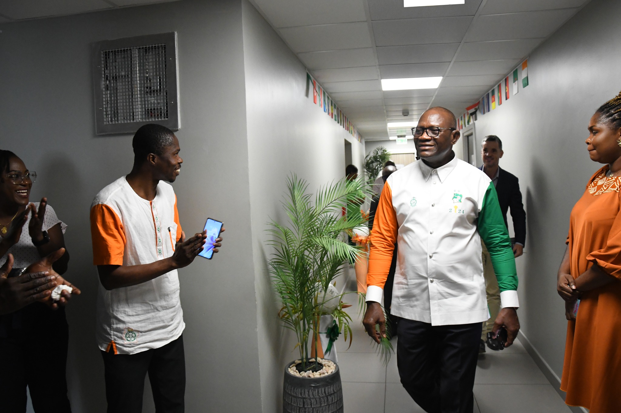Suite à la qualification des Éléphants pour la finale de la 34e édition de la CAN Côte d'Ivoire 2023 face aux Léopards de la République Démocratique du Congo, le Ministre délégué en charge des Sports et du Cadre de Vie, Adjé Silas METCH a été reçu en liesse par ses collaborateurs ce matin à son arrivée au Cabinet. Tout joyeux, le personnel a eu droit à des empoignades chaleureuses et à de la motivation, car au soir du 11 février, la coupe sera brandit par toute la nation entière.
